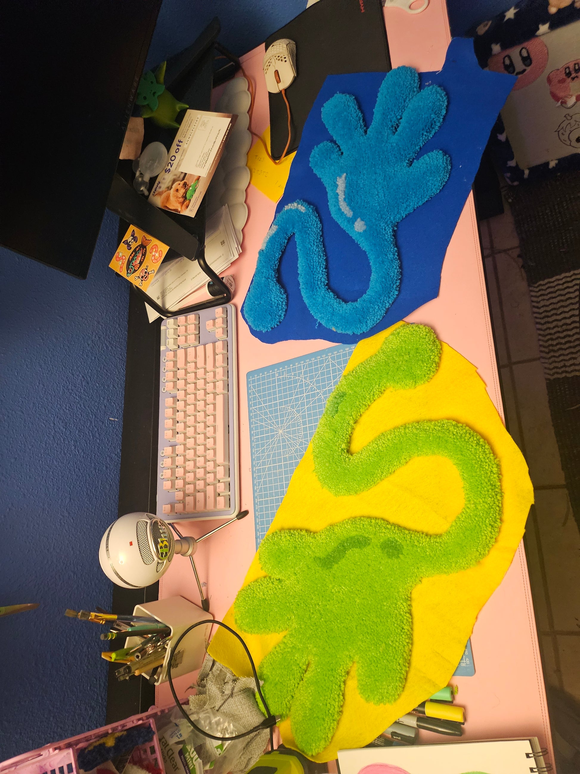 Tufted sticky hands. Perfect catch all for a table or hanging on a wall.